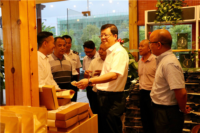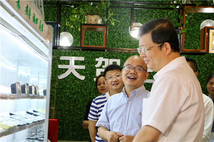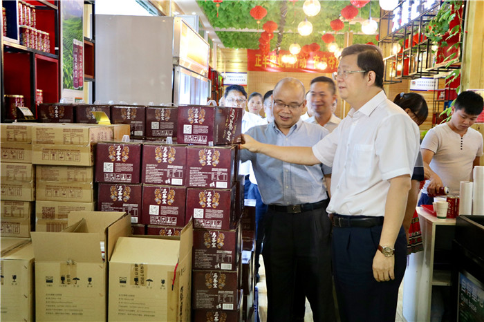 9月28日下午,贺州市委书记李宏庆来到爱莲湖农投集团长寿食品一条街,对国庆节前食品安全工作开展检查。市委常委、秘书长陈远明陪同检查。